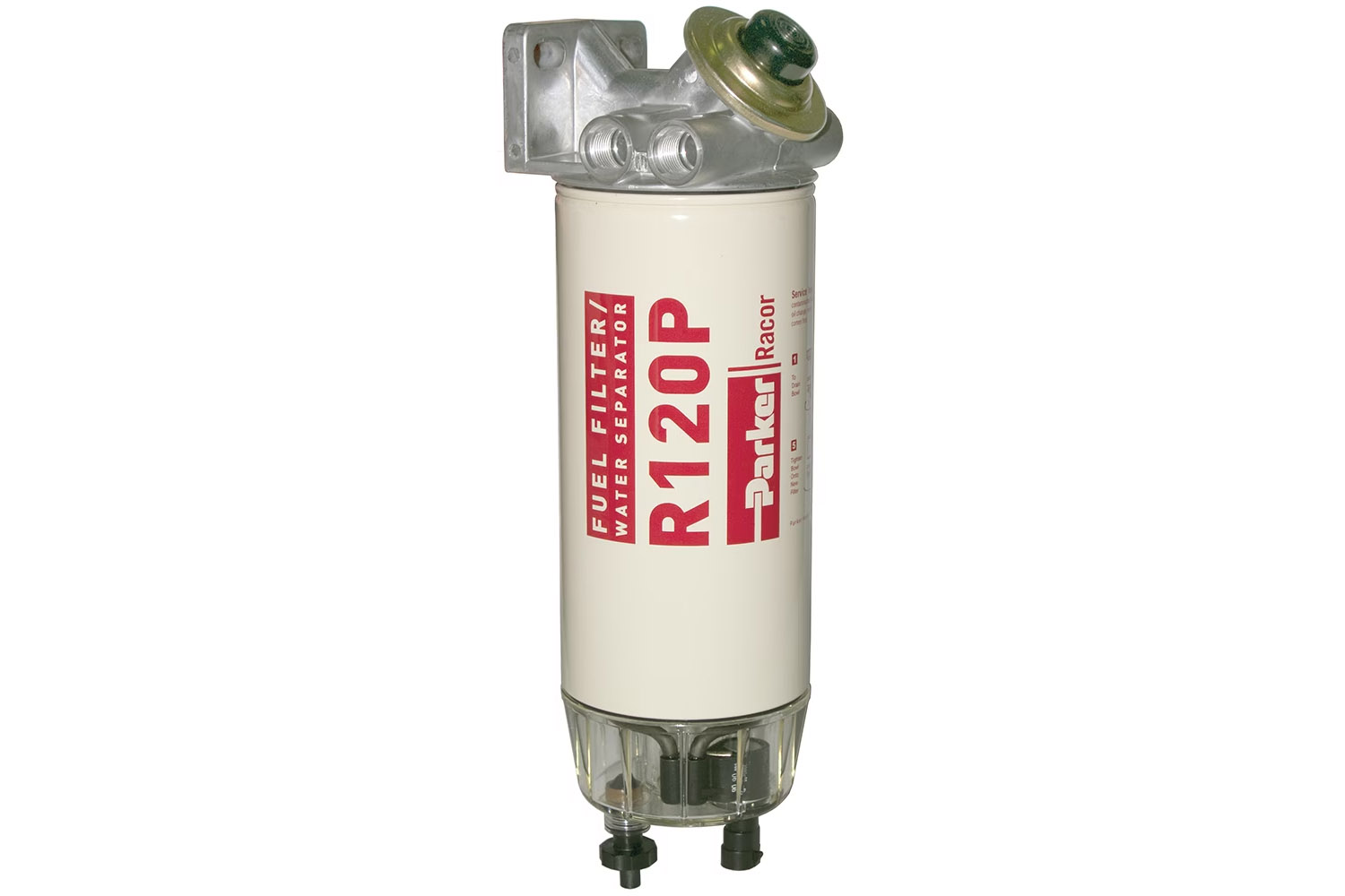 All Spin-on Series replacement cartridge filter elements utilize Racor’s high-efficiency Aquabloc® engineered media. Aquabloc® is a blend of high-grade cellulose compounded with resins and a special chemical treatment. It incorporates pleat-spacing corrugations and a graduated pore structure to increase dirt-holding capacity and extend filter life. The media is waterproof and rustproof, capturing contaminants while the specially treated surface separates and coalesces water from the fuel, which causes the water to gather into large droplets that then fall into the fuel filter’s collection bowl.