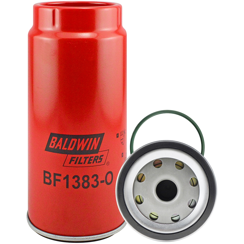 Baldwin spin-on fuel filters with open ports for bowls keep fuel clean and engines running at maximum efficiency. These filters feature a port designed to be used with the OE bowl.
